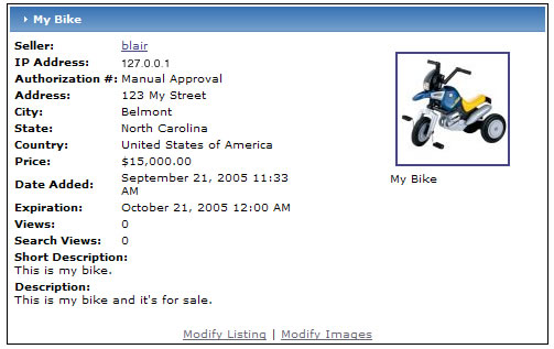 You can modify the details of the ad by clicking the 'Modify Listing' link and add or delete images by clicking the 'Modify Images' link.