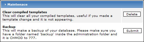 The page checks to see whether or not the server has the correct settings and whether or not your 5 folders and 1 file have been CHMOD'ed successfully. If you are receiving an error in the "Server Settings" section, please contact us for further information. If you are receiving errors in the CHMOD settings area, please visit the section in this user manual entitled (****INSERT LINK HERE****) "CHMOD your folders and files" to resolve the errors. Refresh the page once you have changed the permissions of the folders and files.