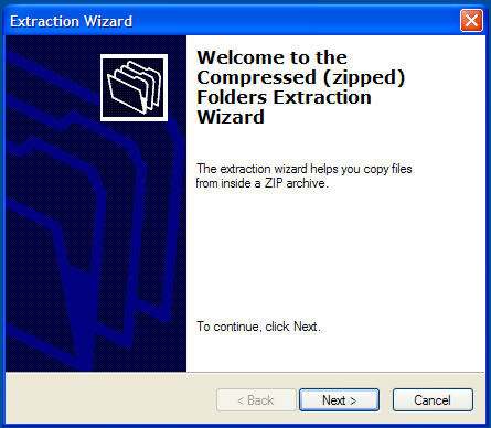 There are a number of great products that allow you to decompress the zip file you've just downloaded. Some of these include winzip (http://www.winzip.com/) and pkzip (http://www.pkware.com). If you're using Windows XP, an extraction wizard is already installed on your computer. The images included in this section will be of the extraction wizard included in XP.
