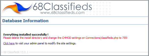 CONGRATULATIONS! You have successfully installed 68 Classifieds!