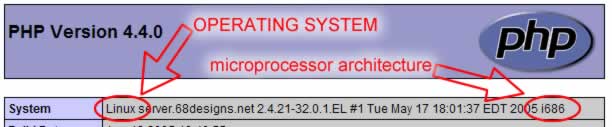 This page will display information about your server and the configuration of some settings made by your hosting company.The information we need is the Operating System and the microprocessor architecture. Don't worry - the page you're looking at makes getting this information very easy!