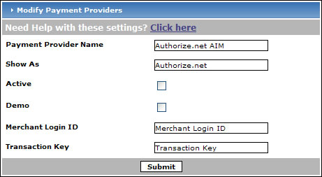 Demo - If you would like to test the payment provider settings, place a check in the "Demo" box.