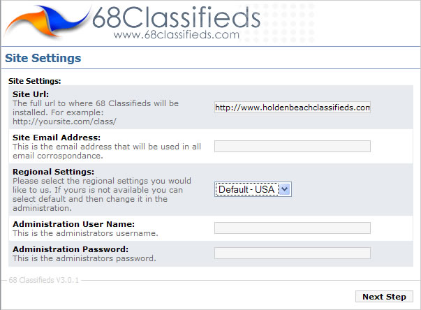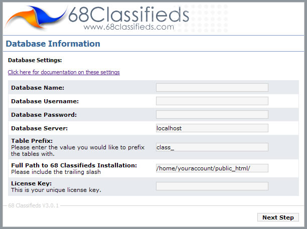 License Key: Enter the license key that you have been provided. The license key can be retrieved by logging in at http://www.68classifieds.com/members/