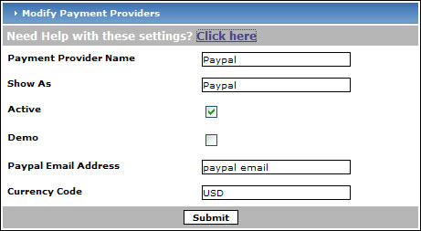 Paypal email address - Enter the email address that you use at Paypal here.